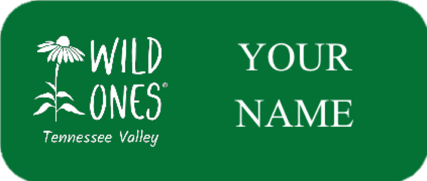Members of Tennessee Valley Wild Ones are welcome to order a permanent nametag at any time. Nametags are green plastic (1.5″ × 3.5″) with the chapter logo and white lettering, and are available with either a magnetic back or a pin back. Each nametag is $11.